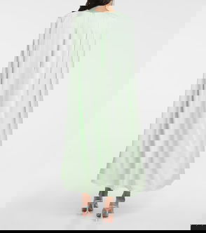 Chloé’s green dress tells of the label’s vintage inspirations and Parisian ease. This charming style is cut to a flowing midi fit with pleats through the bodice and at the ruffled cuffs for a feminine feel.