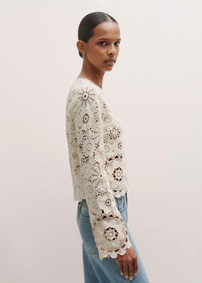 Gabriela Hearst celebrates traditional craftmanship with her collections for Chloé. Made from wool with a low environmental impact, this ribbed off-white top is trimmed with hand-crochet stripes through the sides and flared sleeves.