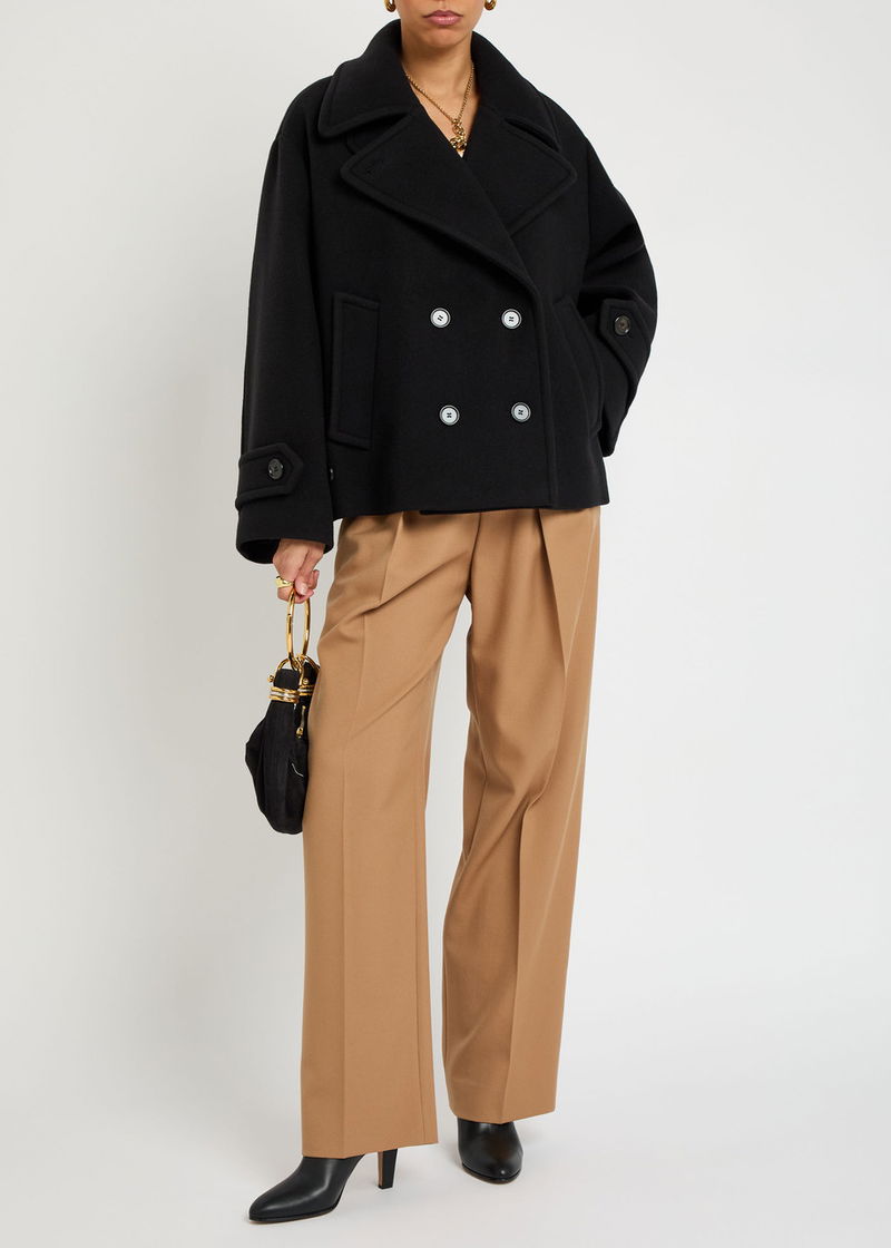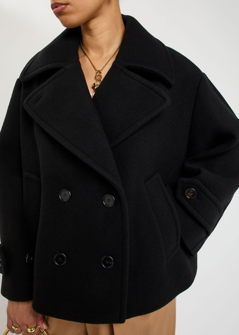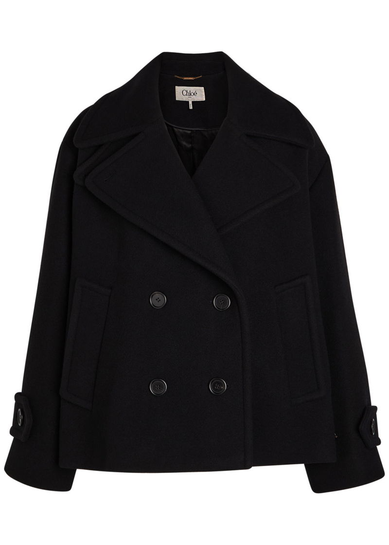 Chloé wool-blend jacket. Notched lapels, detachable button-fastening neck tab, dropped shoulders, adjustable button-fastening cuffs, side slip pockets, fully lined. Double-breasted button fastenings through front.