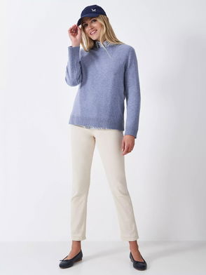 The streamlined silhouette of Chloé's navy sweater is finely rib-knitted for a form-fitting shape. It's cutaway at the crew neck and inserted with intricate swirled guipure lace panels, noting the house's playful sensuality, and balanced by elongated sleeves. Style it with white denim for a pristine finish.