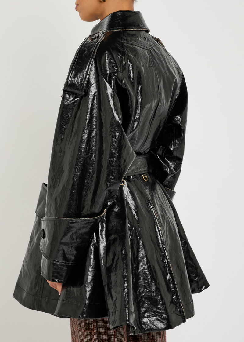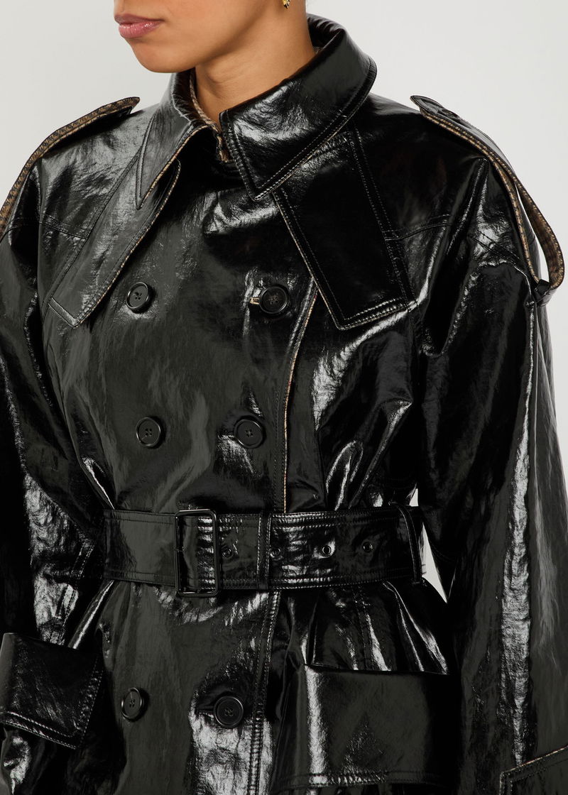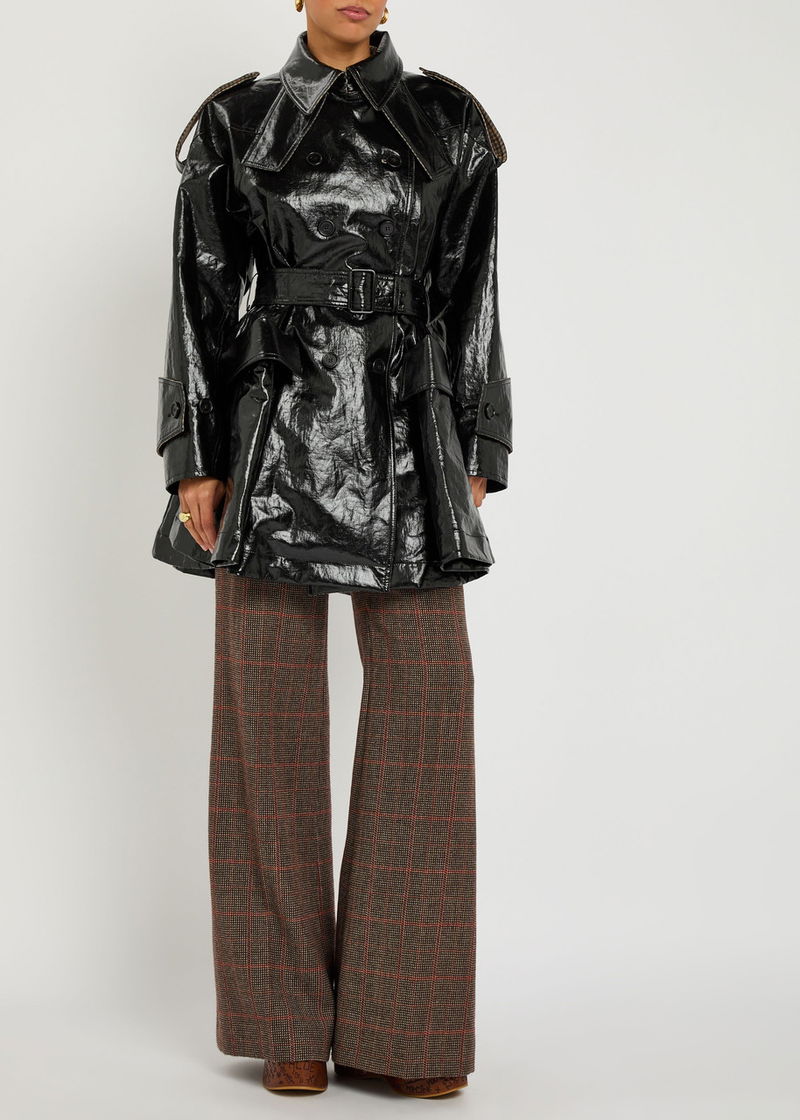 Houndstooth-trimmed Coated Linen Trench Coat