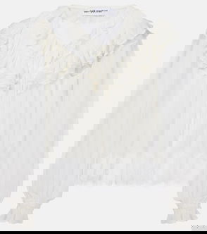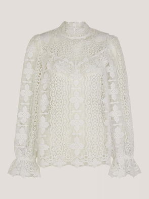 The ethereal silhouette of this white ivory top hallmarks Natacha Ramsay-Levi’s romantic yet practical vision for Chloé. Made in France, the lightweight silk georgette is shaped to a round gathered neck with pintuck pleats down the front and sheer lace-inserts along the sleeves. Complement the neutral tone with earthy, natural colours.