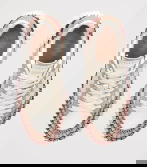 Chloé canvas sneakers. Designer-stamped tongue, designer-stamped heel tab, logo-print canvas webbing, leather trims with contrast stitching, scalloped midsole, rubber sole, round toe. Lace-up front.