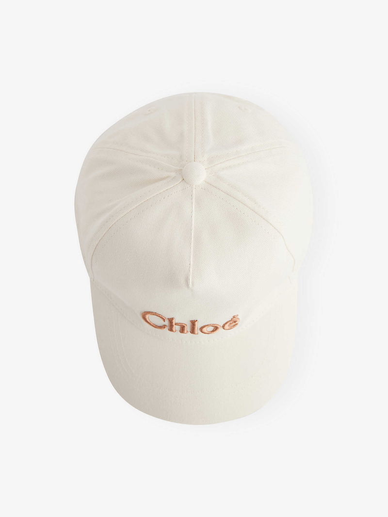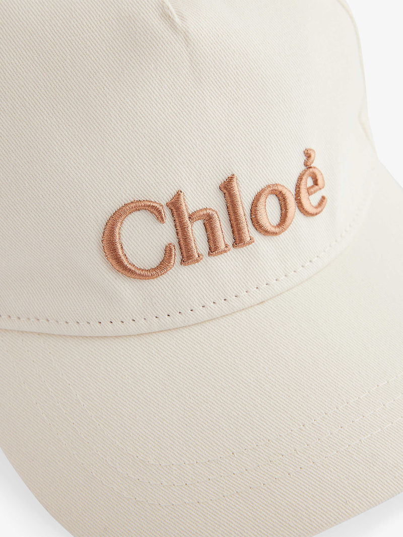 Chloé cotton baseball cap. Adjustable buckle fastening at back. Six-panel design, logo embroidered at front, curved peak, gold-toned branded buckle.