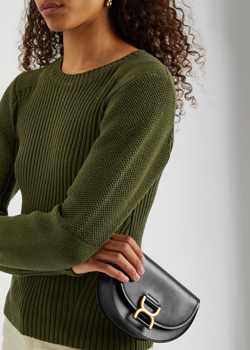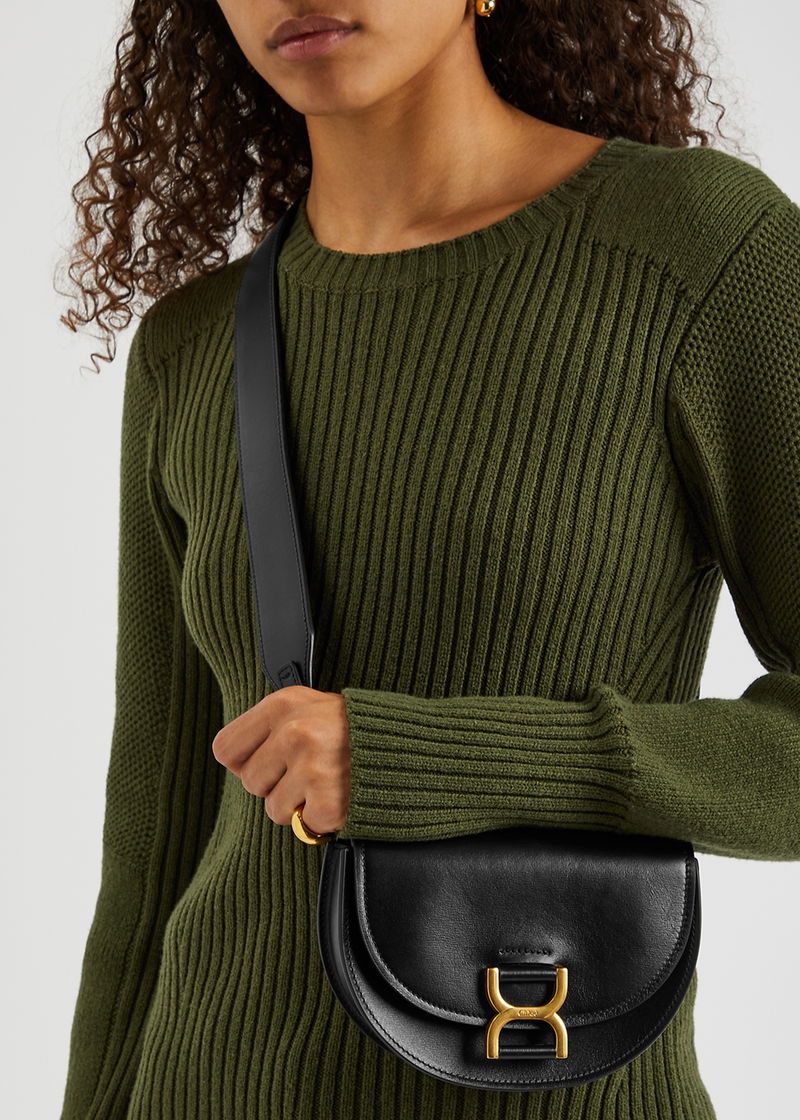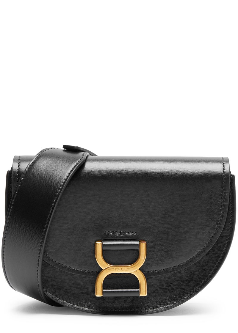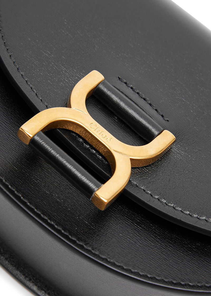 Chloé leather cross-body bag. Detachable shoulder strap, designer-engraved logo plaque, internal slip pocket. Concealed magnetic press-stud fastening at front flap.