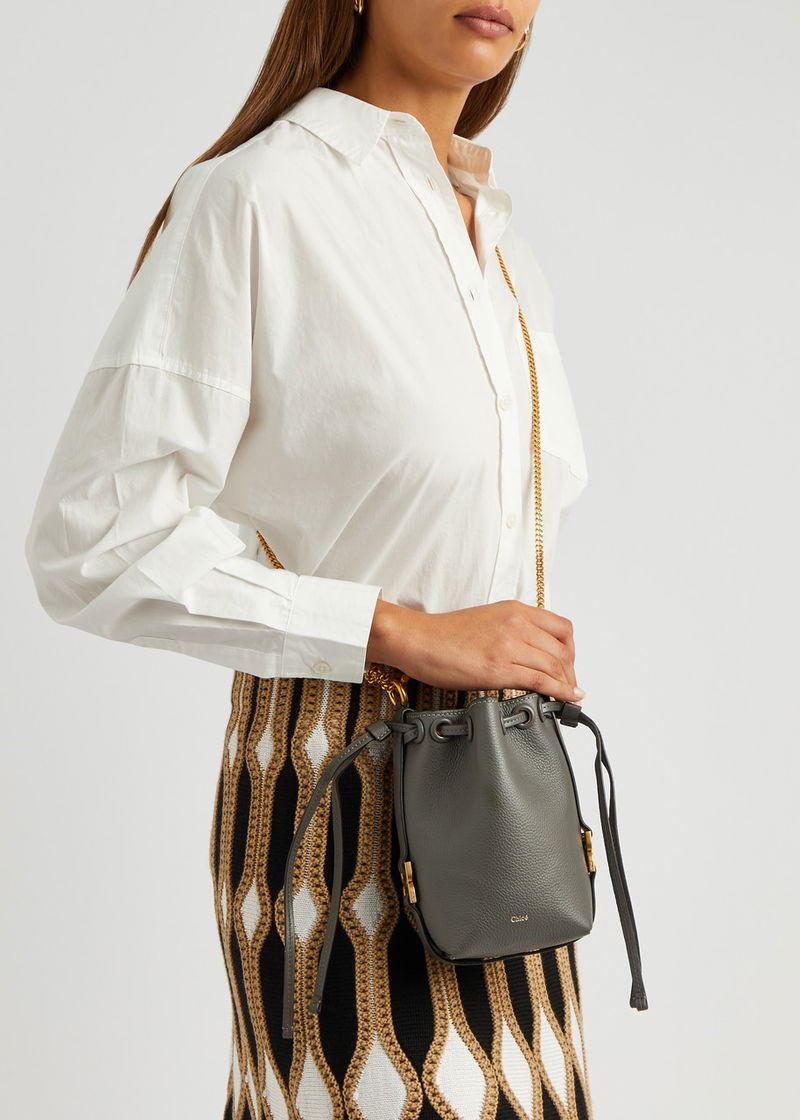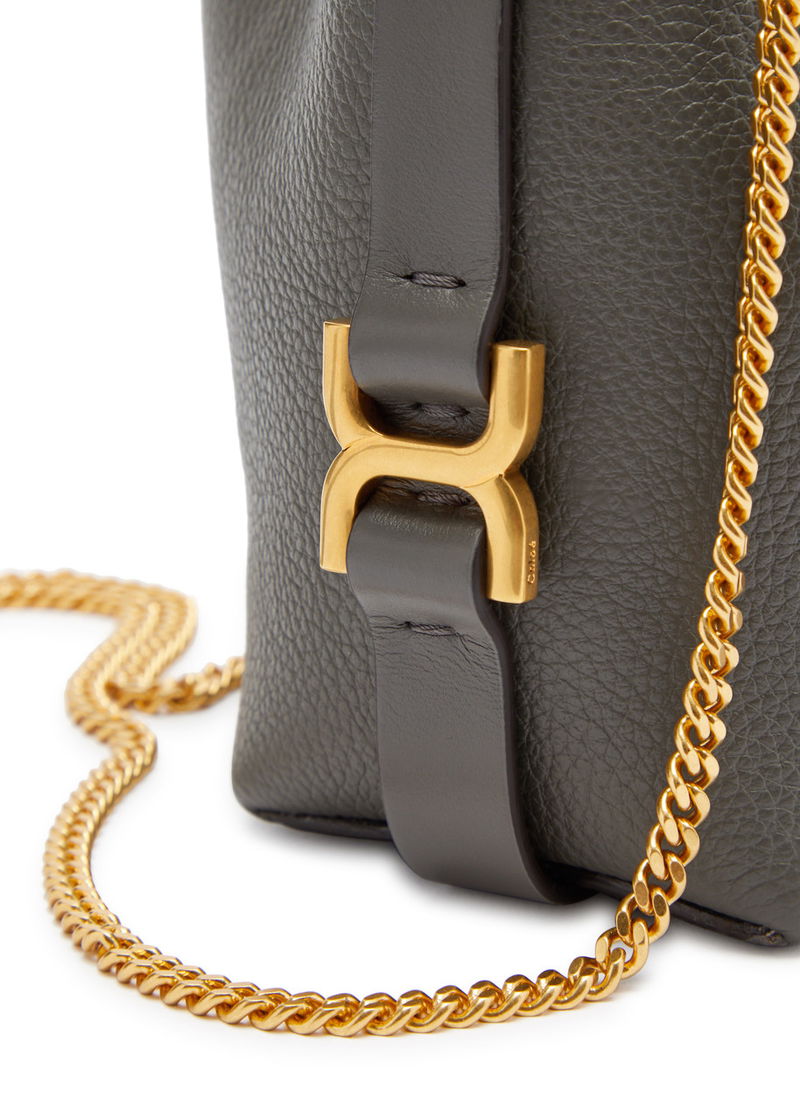 Chloé’s Marcie collection fuses the label’s timeless craftsmanship with bohemian details. Worked to a mini bucket-shaped silhouette, this bag is made from grained leather that’s topped with a chain shoulder strap and adorned with coordinating logo plaques at the sides.