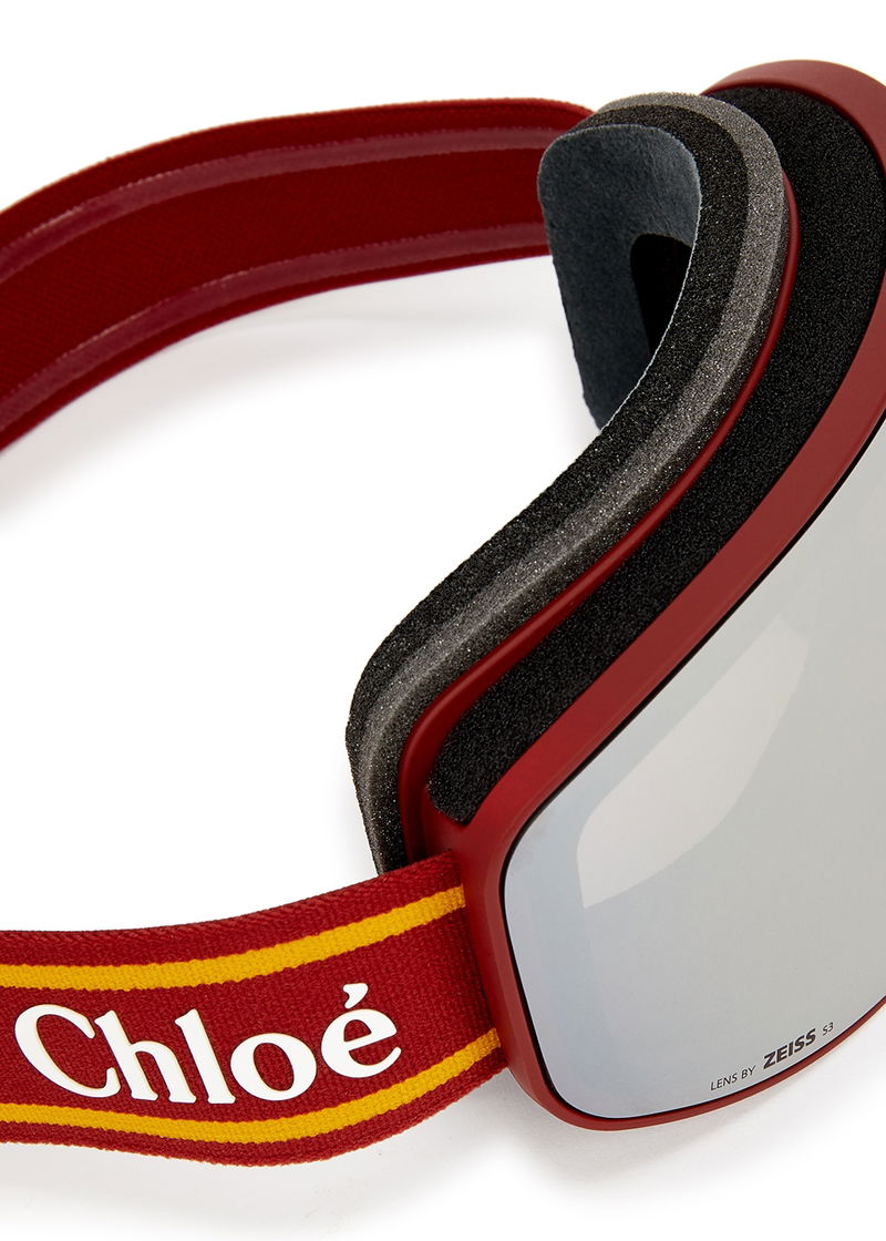 Chloé ski goggles - comfortable to be worn with or over a helmet with engraved mirrored lenses, soft foam inner frame and adjustable elasticated logo-jacquard strap.