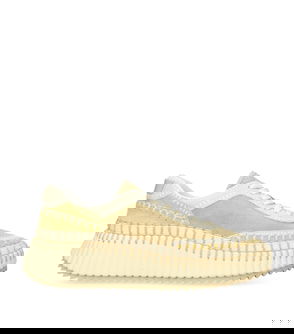 Chloé leather low-top trainers. Lace-up fastening. Closed round toe, low top, panelled design, contrast stitching, chunky rubbed sole detailing.