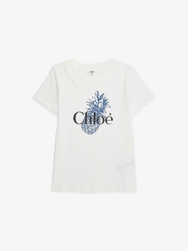 Chloé cotton-jersey T-shirt. Relaxed fit, ribbed round-neck, short sleeves, brand and pineapple print at front.