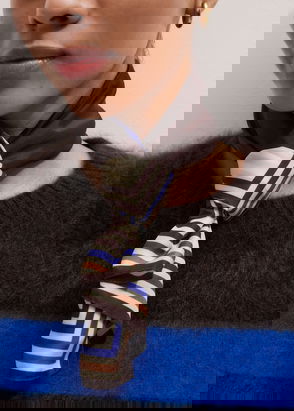Chloé’s scarf is printed with artistic red tulip motifs along with the label’s logo. Made from a soft blend of modal and cashmere, this uplifting accessory is tipped with frayed brown trims for a delicate end note.