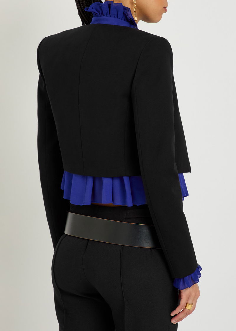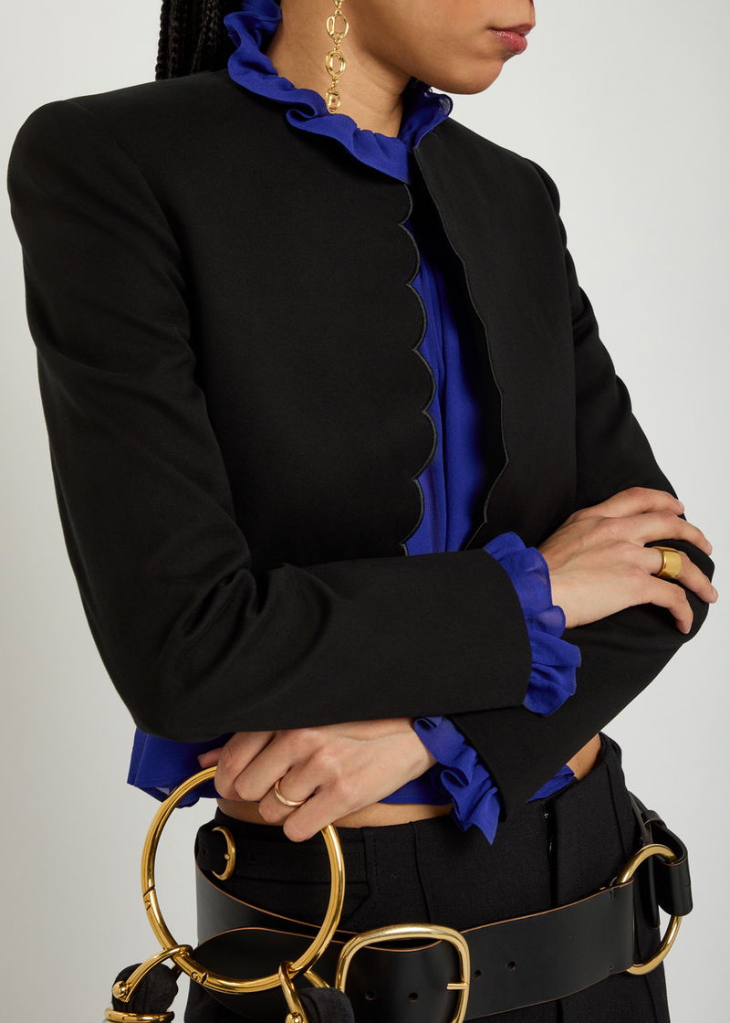 Chloé stretch-cotton blazer. Scalloped trims, padded shoulders, fully lined. Slips on.