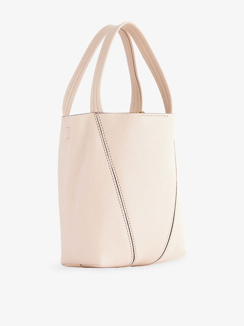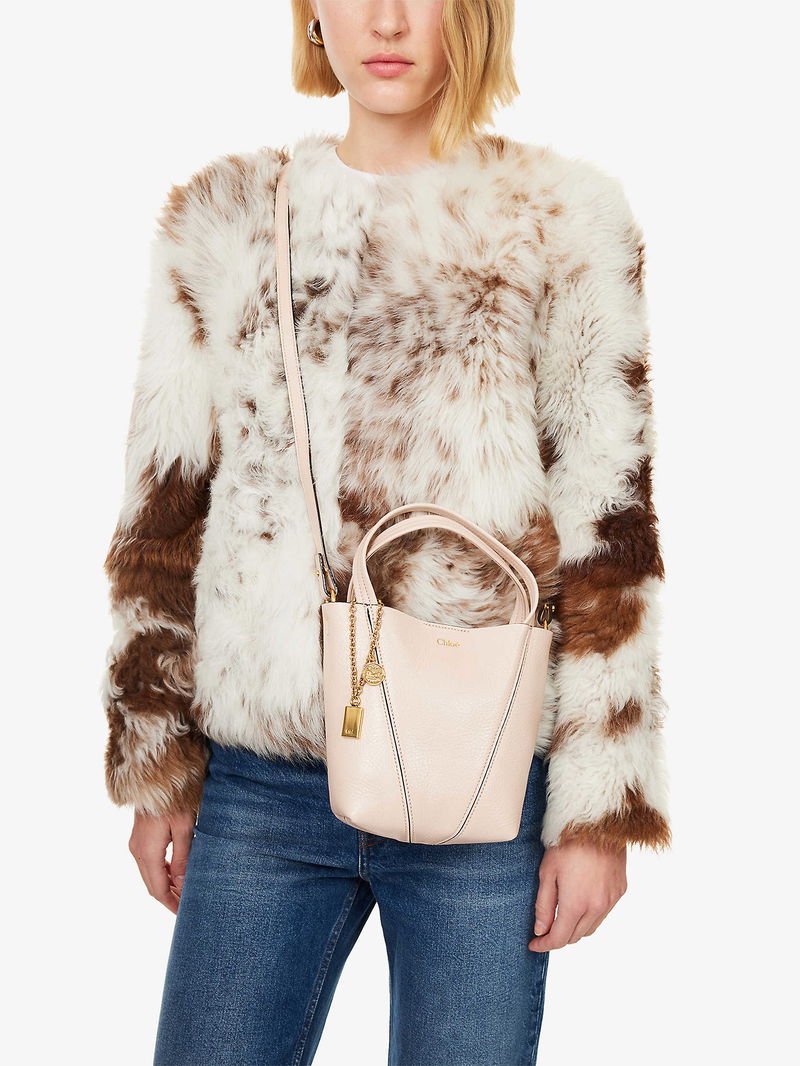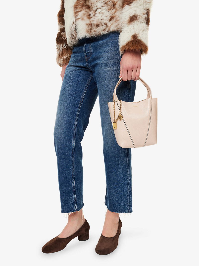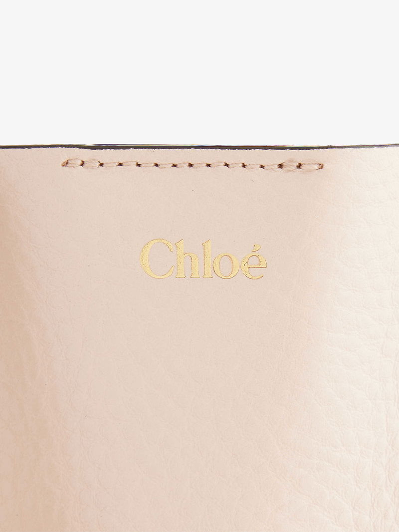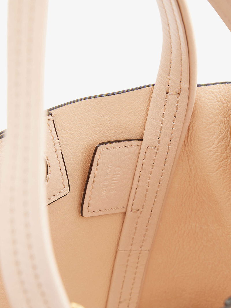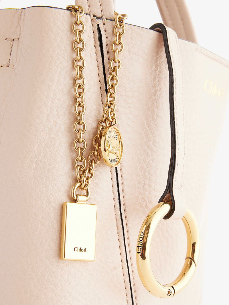 Chloé leather tote bag. Double top handles, detachable adjustable shoulder straps, foiled branding at front, detachable brand charms, all-over grained leather, gold-toned hardware, one main compartment.