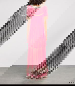 Chloé accentuates the 1970s maxi silhouette of this beige dress with a painterly print of red tulips growing from a sinuous vertical vine. Made in France, it's shaped from crepe with a calligraphic-inspired print with a round neckline featuring a bow at the nape, a waistline seam, then lined in whisper-weight silk chiffon. Partner it with a basket-woven bag to heighten the bohemian verve.