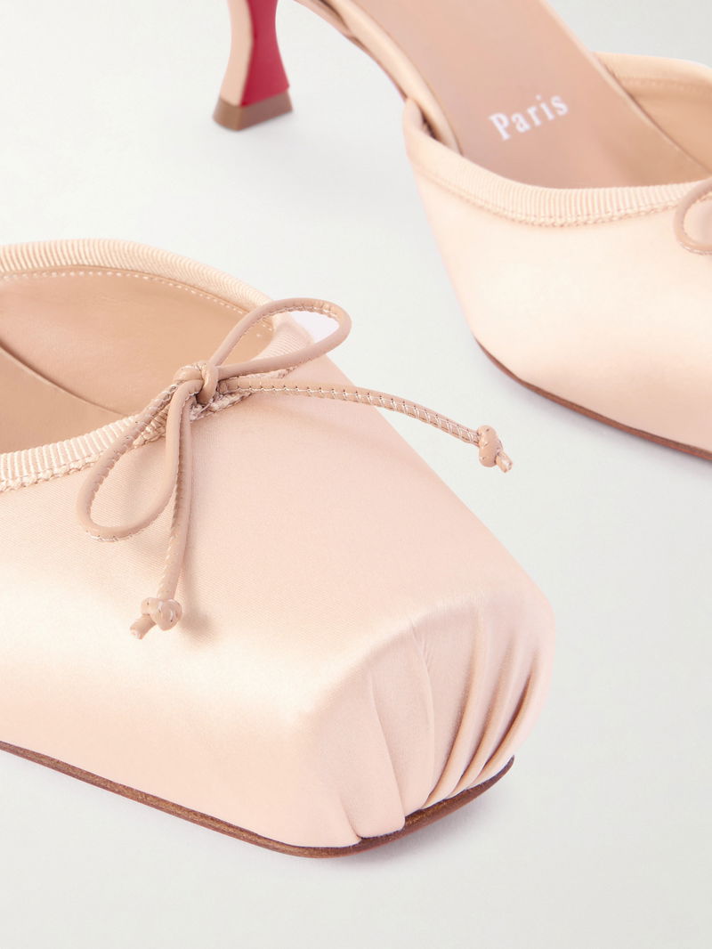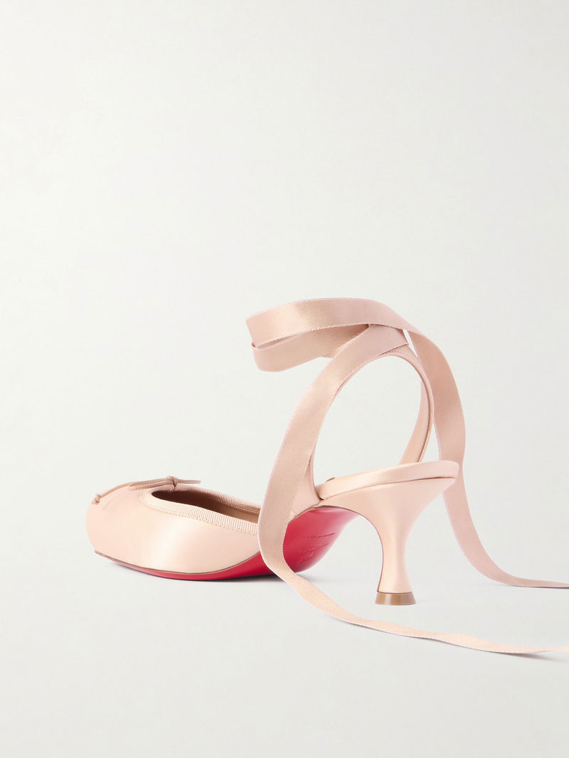 Christian Louboutin's 'Cassia' pumps are inspired by the beauty of ballet. Made from satin, they're trimmed with grosgrain and have long ribbons that wrap around the ankle. The square toes reference pointe shoes - with the comfort and support of 55m heels.
