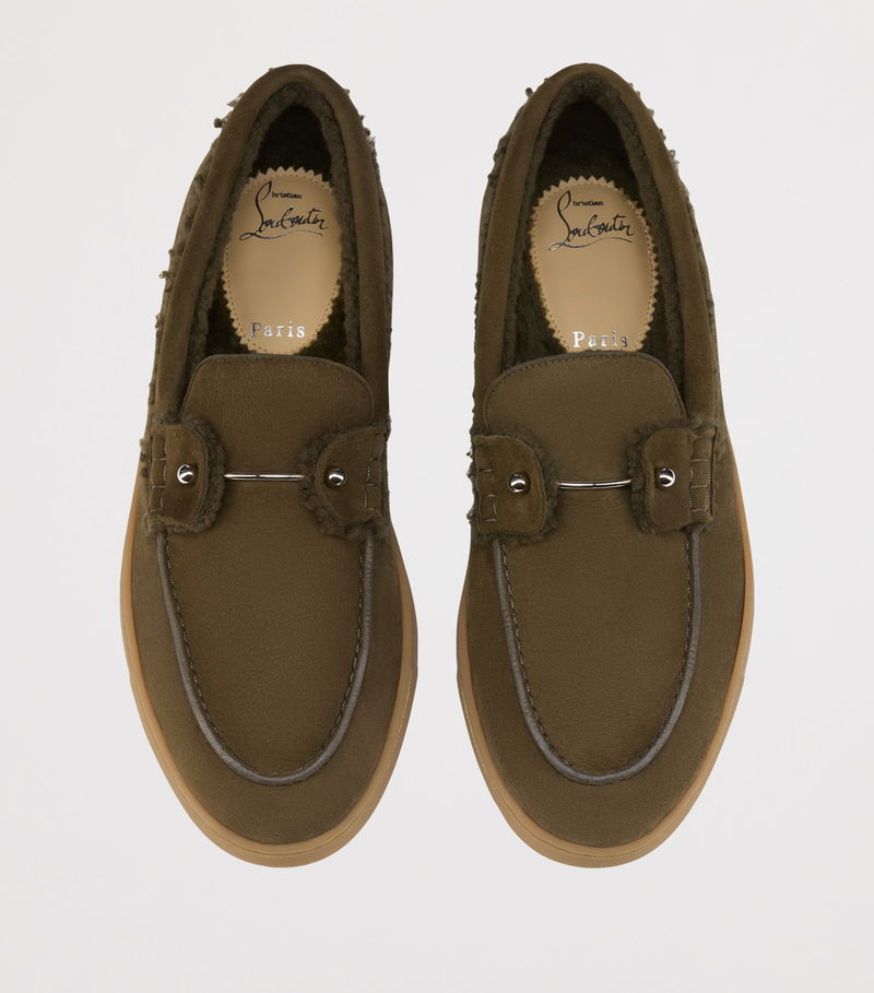 The line between sneakers and loafers continues to blur at Christian Louboutin this season, with the Chambeliboat style offering the best of both worlds in a sleek hybrid design. The upper is cut from shearling and features traditional topstitching, while a thick rubber sole adds a comfortable landing.