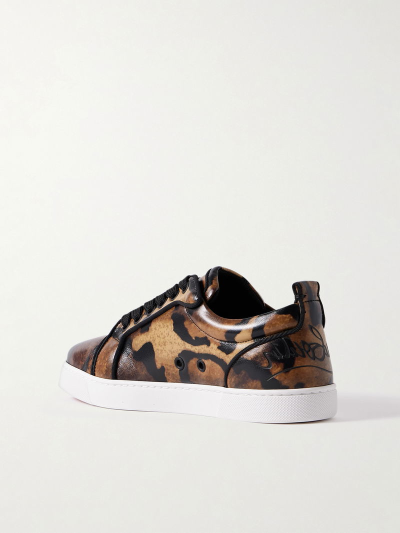 Christian Louboutin’s ‘Fun Louise Junior’ sneakers are modeled on classic court styles. This pair has been crafted in Italy from leopard-print leather traced with grosgrain trims and has gripped rubber soles. Catch a glimpse of the signature red bottoms with every step.