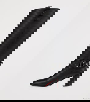 Christian Louboutin's 'Kate Botta' knee boots are one of the brand's most iconic styles because of their sleek and timeless silhouette. Crafted in Italy from smooth black suede, they have a minimally detailed design with pointed toes and 85mm stiletto heels. Gussets along the zipper make for a flexible fit.