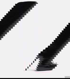 The KM knee-high boots from Christian Louboutin are crafted in Italy from leather with delicate floral lace trims. This pair sits atop 100mm stiletto heels and features a sharp pointed toe and an alluring lace-up closure.