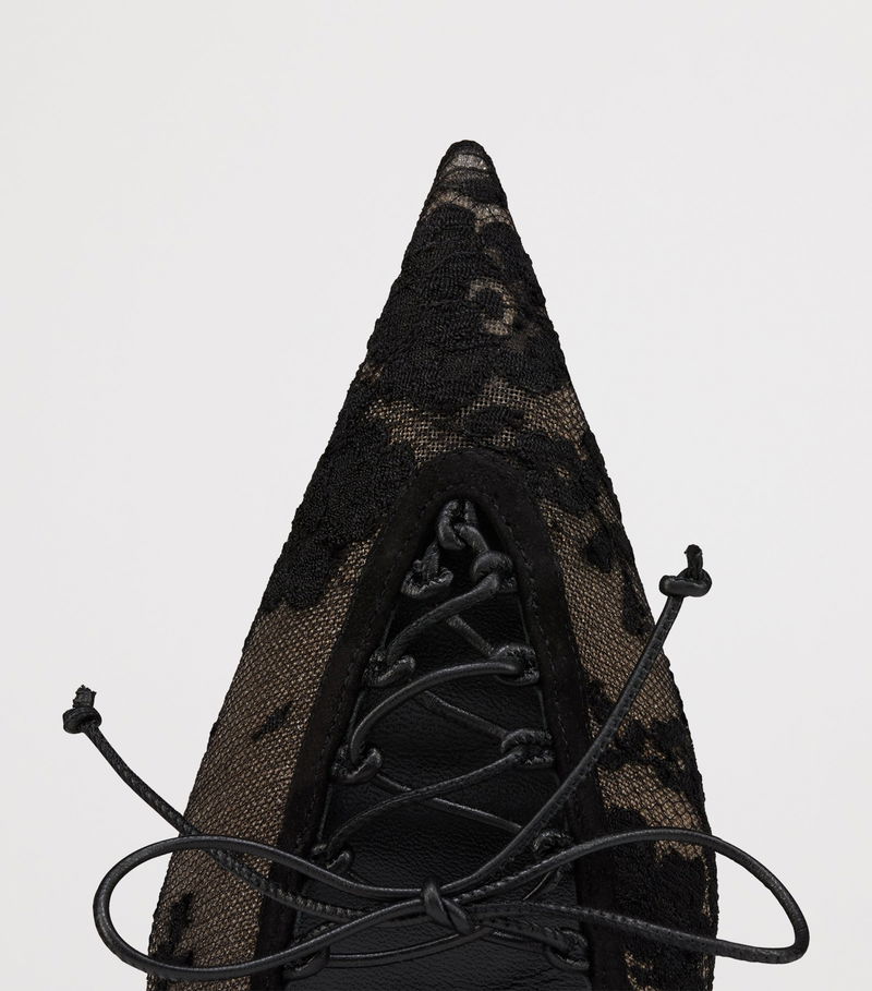 Christian Louboutin showcases its materials mastery in the km Lace Sling slingback pumps. Lacy uppers accented with suede velour are finished with a lace-up fastening that adds a note of gothic energy to the pair, all balanced atop the technically innovative Everlasting red sole.