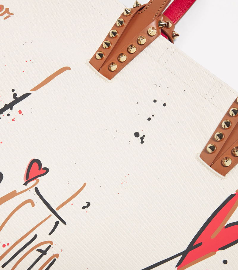 Christian Louboutin's Cabata line has long been a favourite among fashion connoisseurs - and for good reason. Each piece, uniquely finished, exemplifies Parisian craftsmanship with its spacious interior and signature red-lacquered details. This beach bag is no exception, boasting a structured canvas design splashed with flirty logo script and studs at the base of each strap.