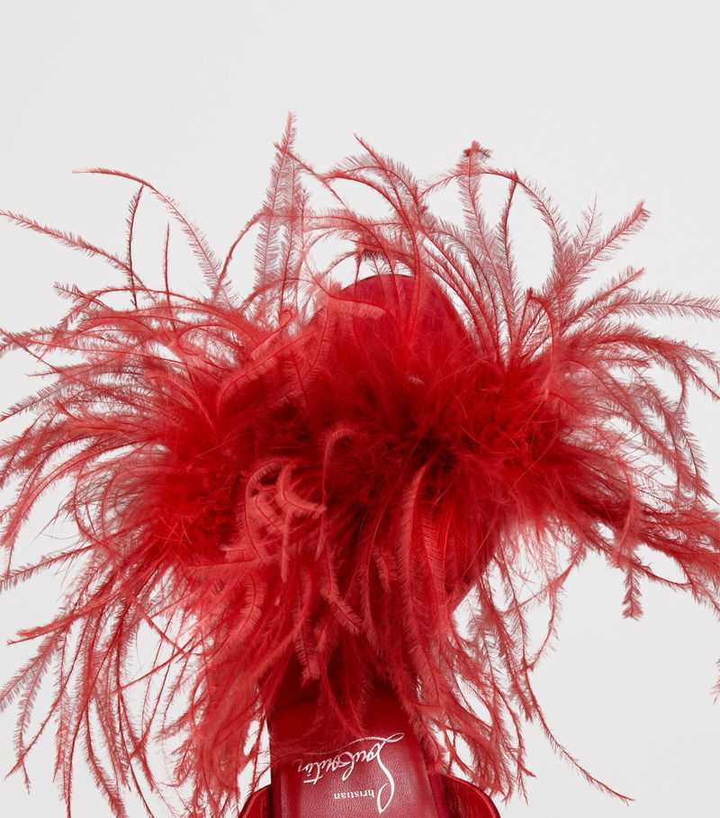 Christian Louboutin delivers drama and daring with its Miss Z Poupi heeled sandals, a pair that keeps the comfort of the Miss Z pumps and adds a touch of energy through floaty, fringed feathers. The padded insoles, hidden in the cascade of tactile fun, keep every step supported and comfortable, while the striking red hue found on the durable Everlasting sole extends into the curve of the heel for an effect that elongates the stiletto without adding any extra height.