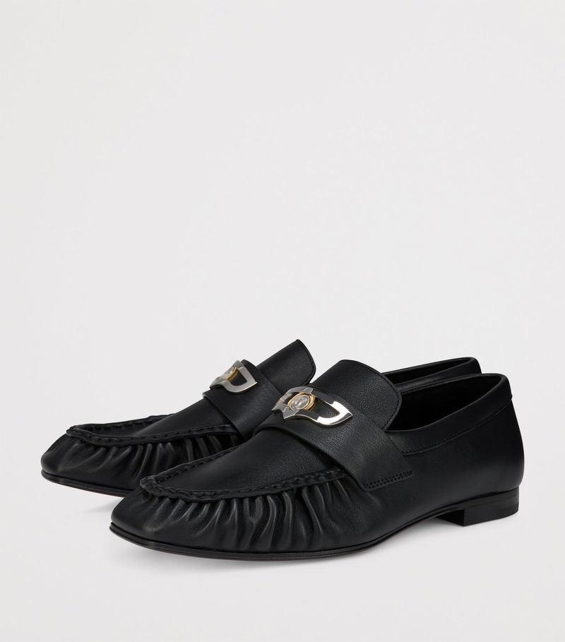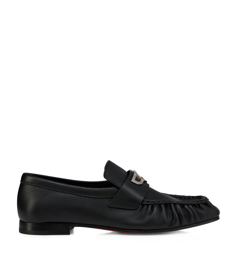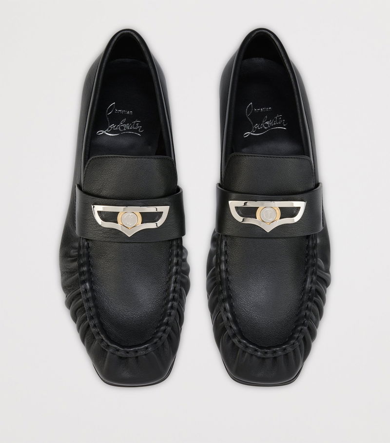 Christian Louboutin redefines the novelty design in fitting fashion by punctuating the Mocallista style with a gleaming cl logo coin.