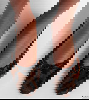 Christian Louboutin's 'Sweetie Jane' flats offer a bolder take on classic ballet styles. Crafted in Italy from leopard-print calf hair, they're detailed with grosgrain piping slim leather bows. The 25mm block heels are covered in the same fabric for a streamlined feel.