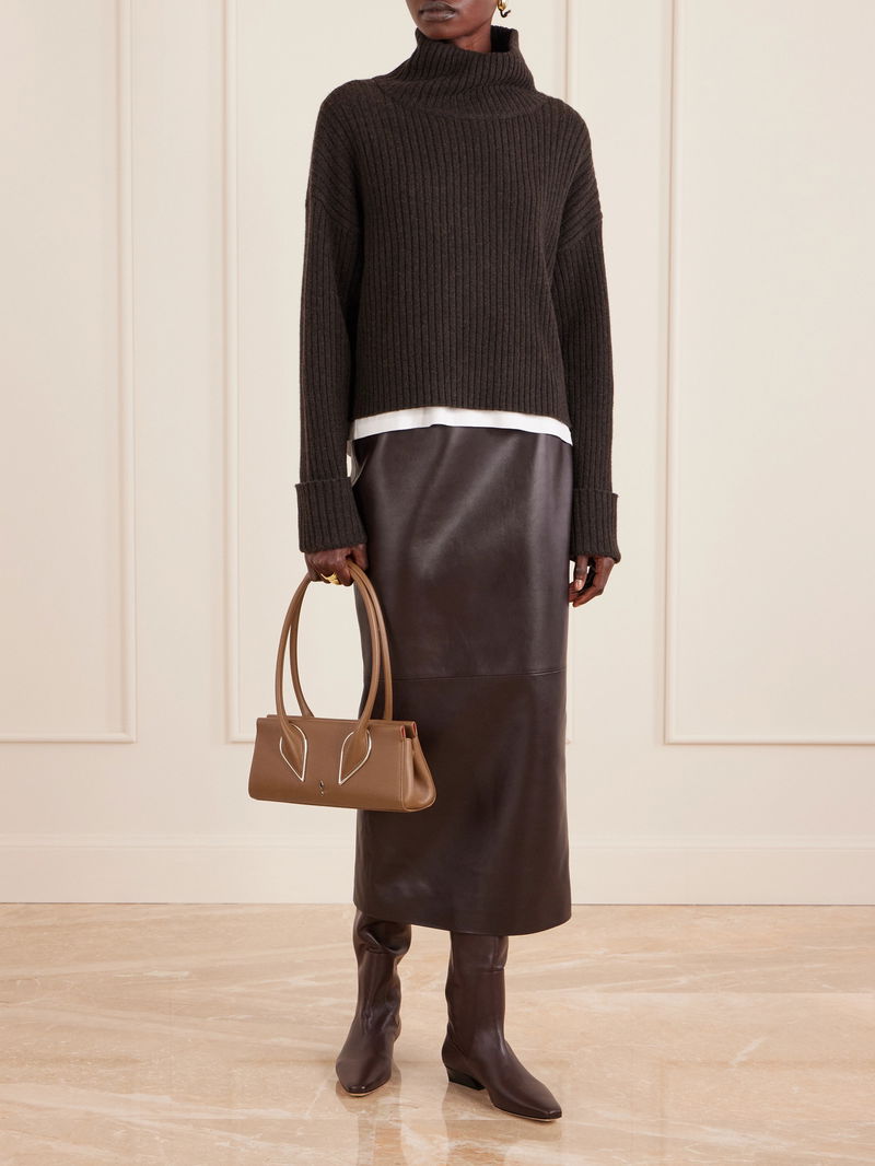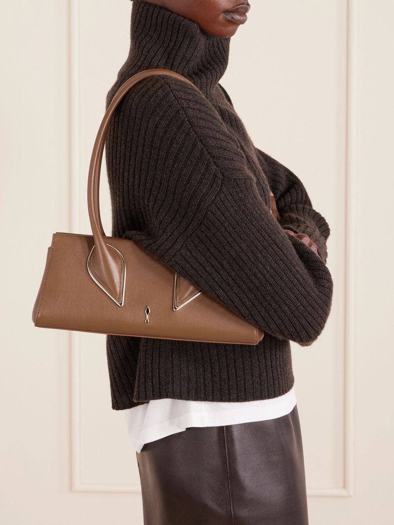 Christian Louboutin's 'Venus' shoulder bag has sculptural straps and angled chapes, inspired by the soles of the maison's 'Miss Z' stilettos.