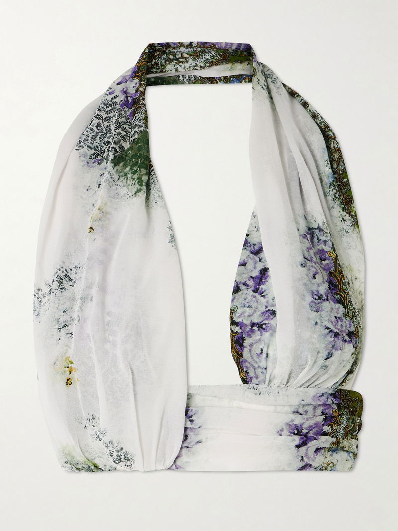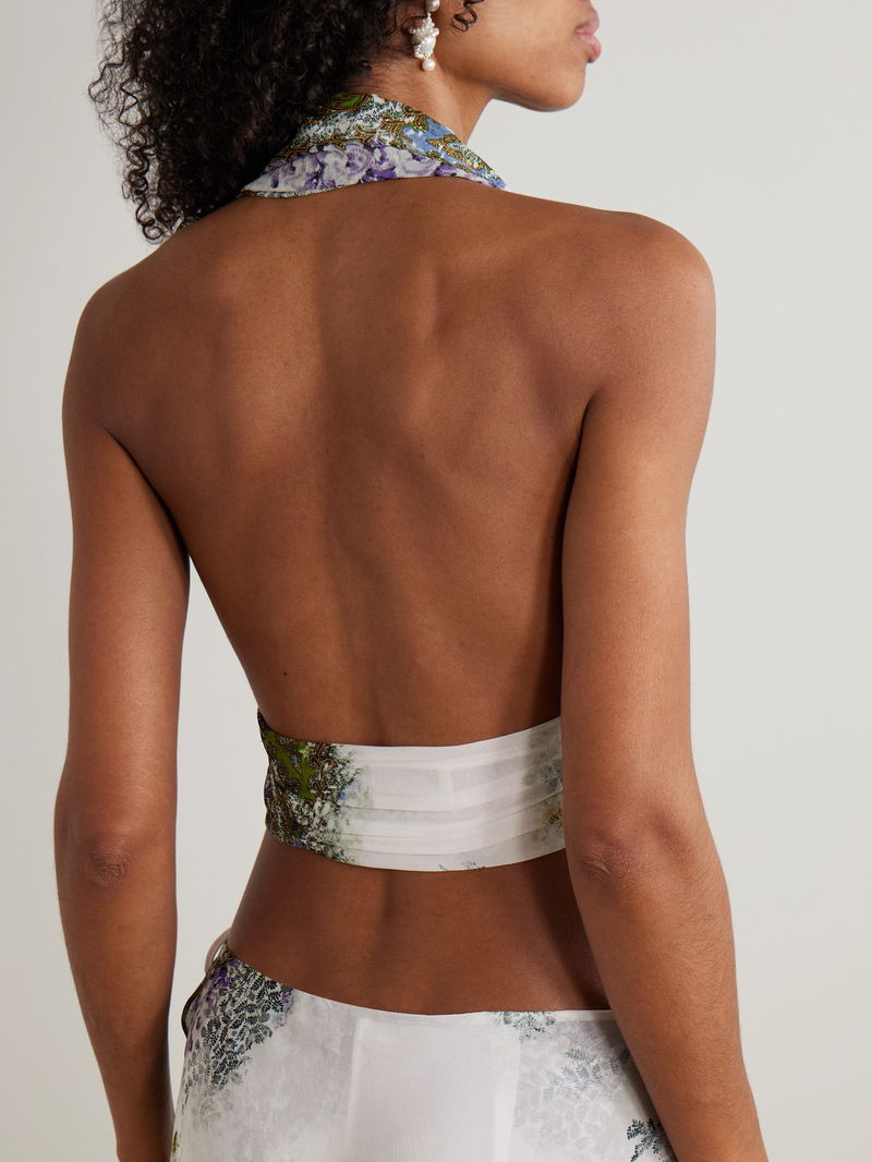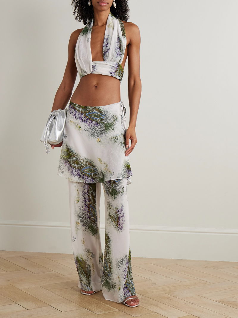 A closer look at the colors mapping Christopher Esber's 'Absence' top reveals various floral and paisley motifs. It's cut in an elegant halterneck profile from airy silk chiffon and designed to be worn with the coordinating pants in our edit.
