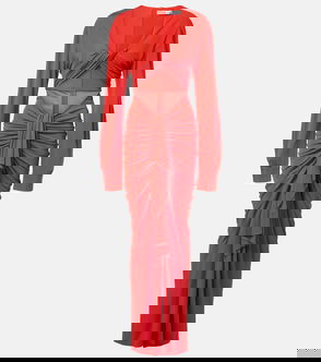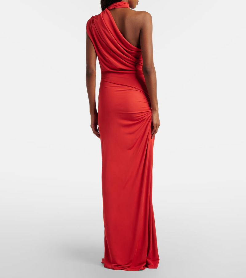 Christopher Esber's sensual cuts and sculptural hardware make for a contemporary twist on minimalism. This draped gown features alluring cutouts with silver-tone details, a one-shoulder neckline, and a deep side slit.