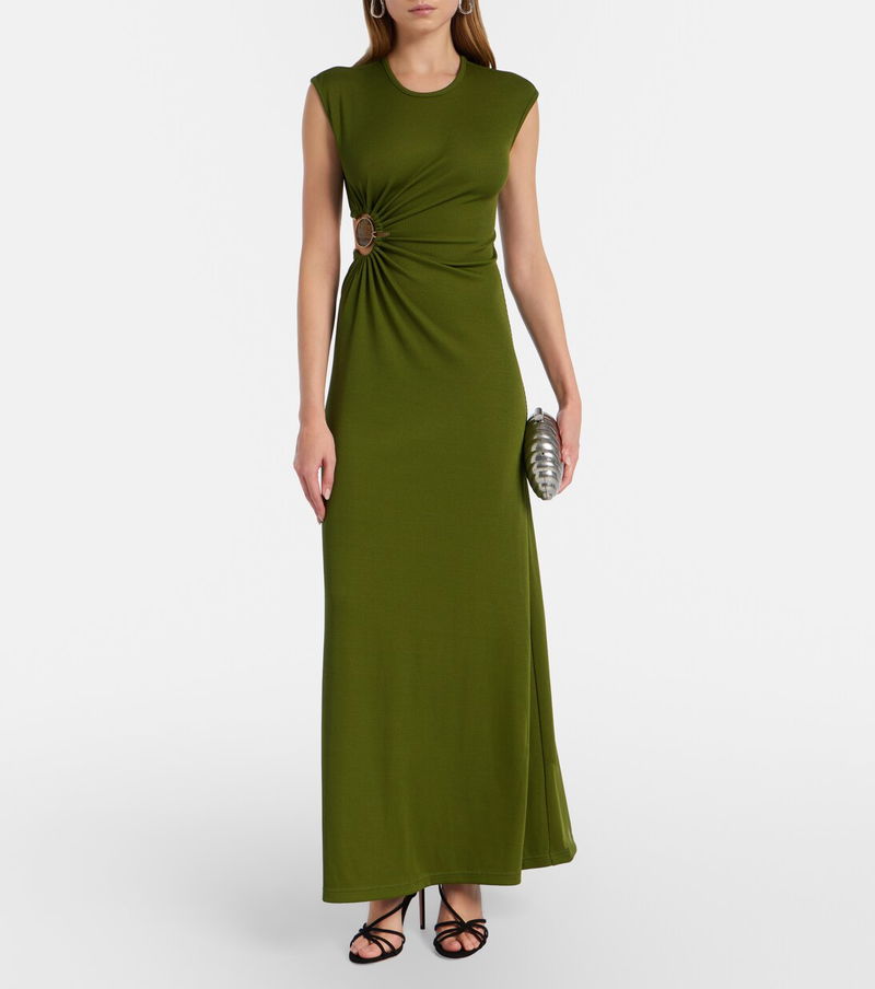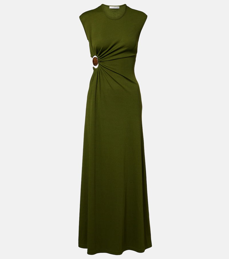 Christopher Esber's sensual cuts and sculptural hardware make for a contemporary twist on minimalism. The Mineral Stone jersey maxi dress is adorned with a colorful embellishment that creates a gathered effect at the front.