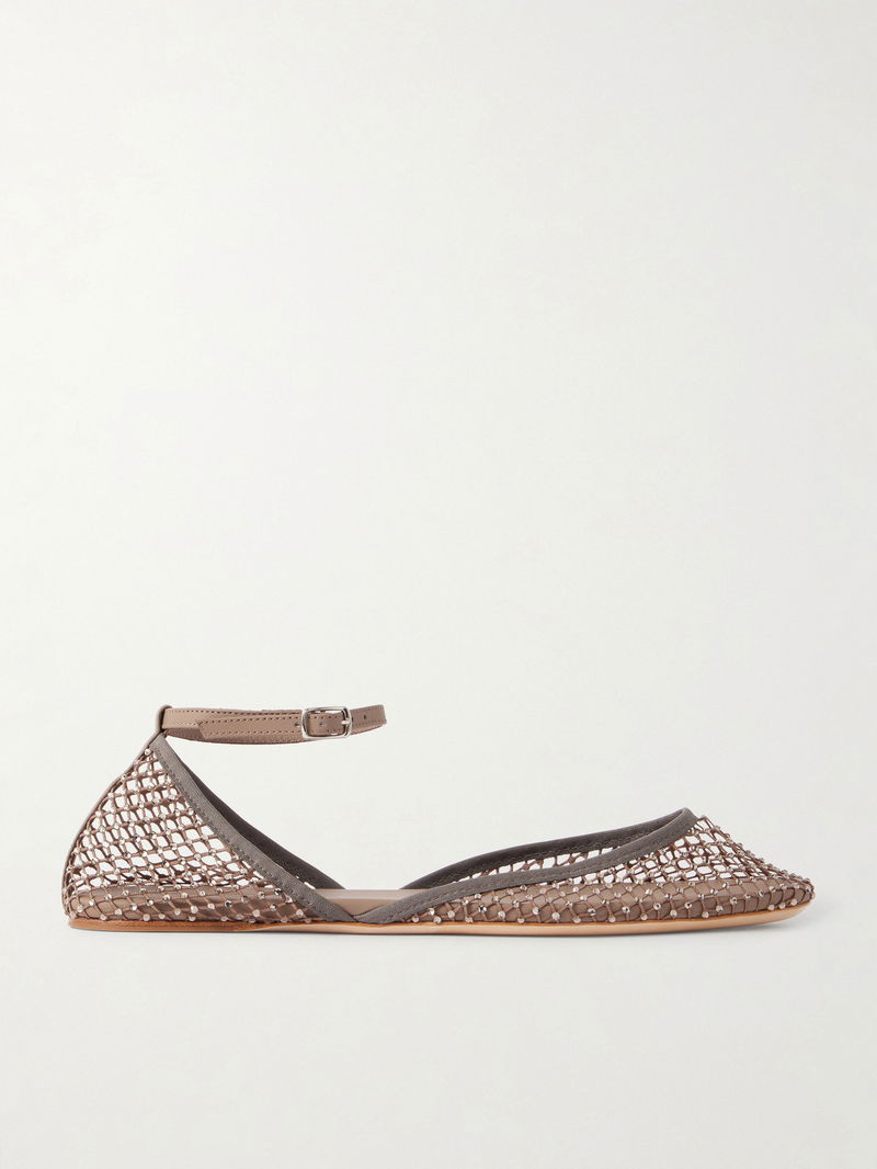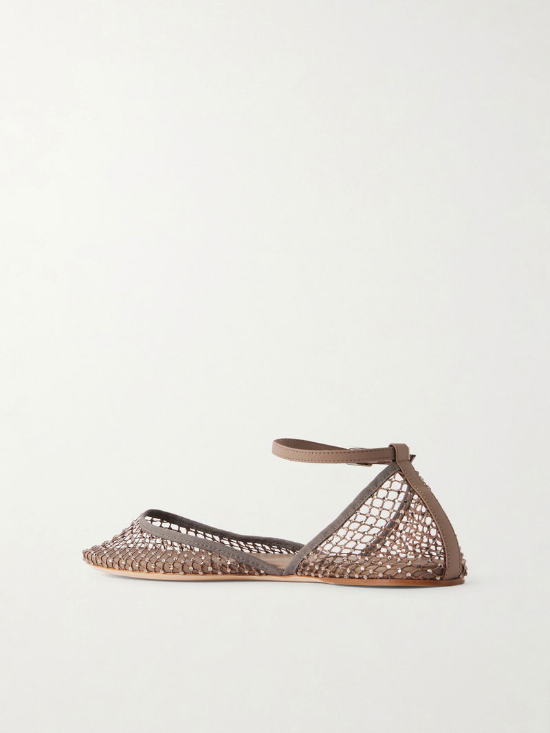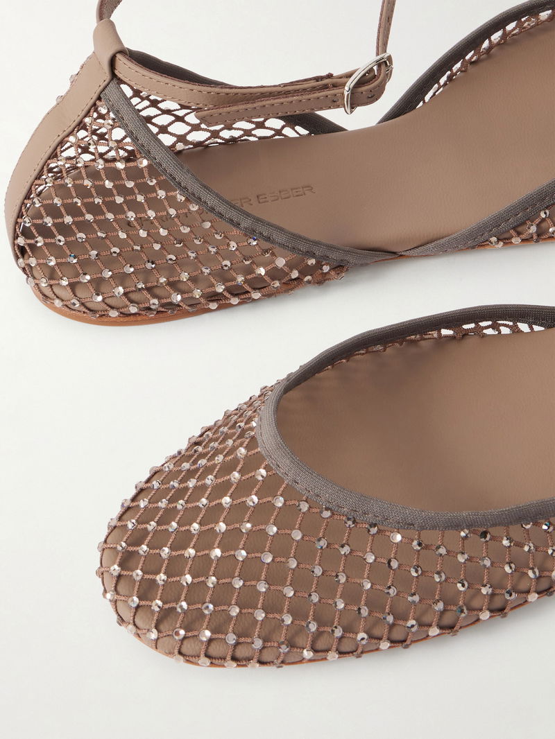 Christopher Esber revisits its coveted 'Minette' ballet flats with this strappy iteration. They've been made in Italy from lattice-inspired mesh, outlined with tonal leather trims and embellished with sparkling crystals.
