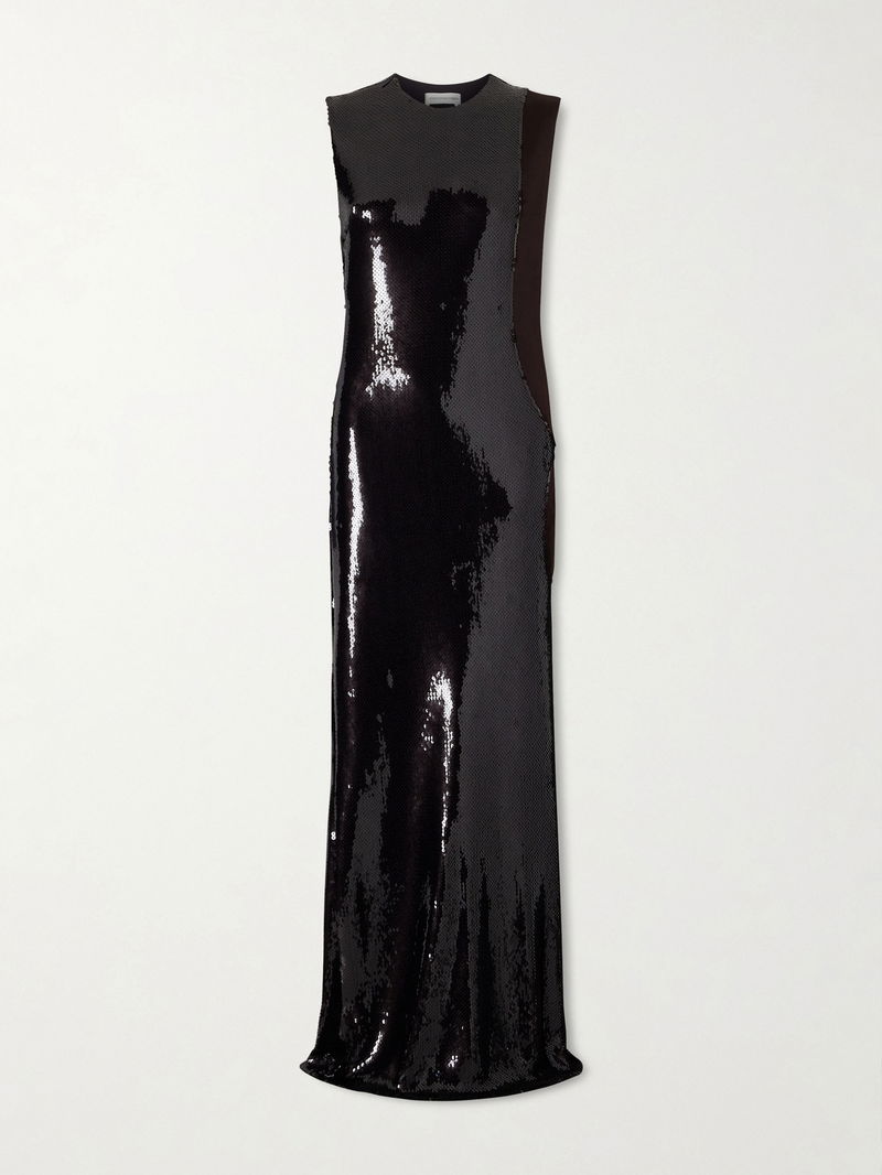 Christopher Esber's 'Opaline' dress reflects the label's ultra glamorous approach to eveningwear. Made from sequined jersey, the maxi silhouette is designed to contour your frame and is finished with a contrasting panel along one side. Style yours with sculptural heels and minimal jewelry.