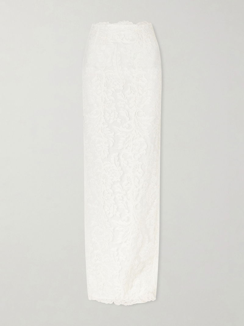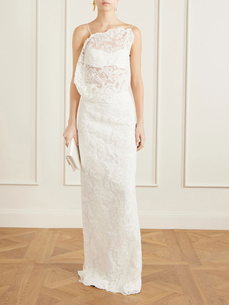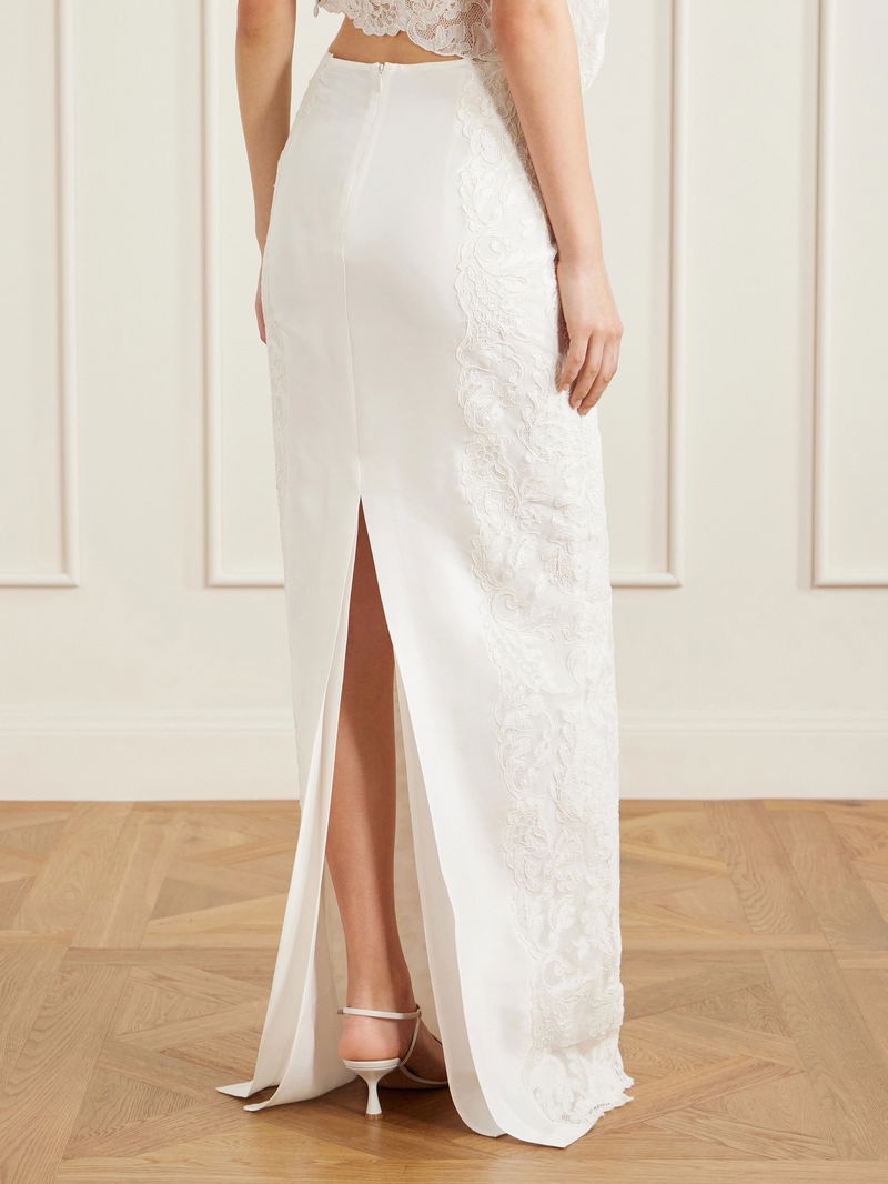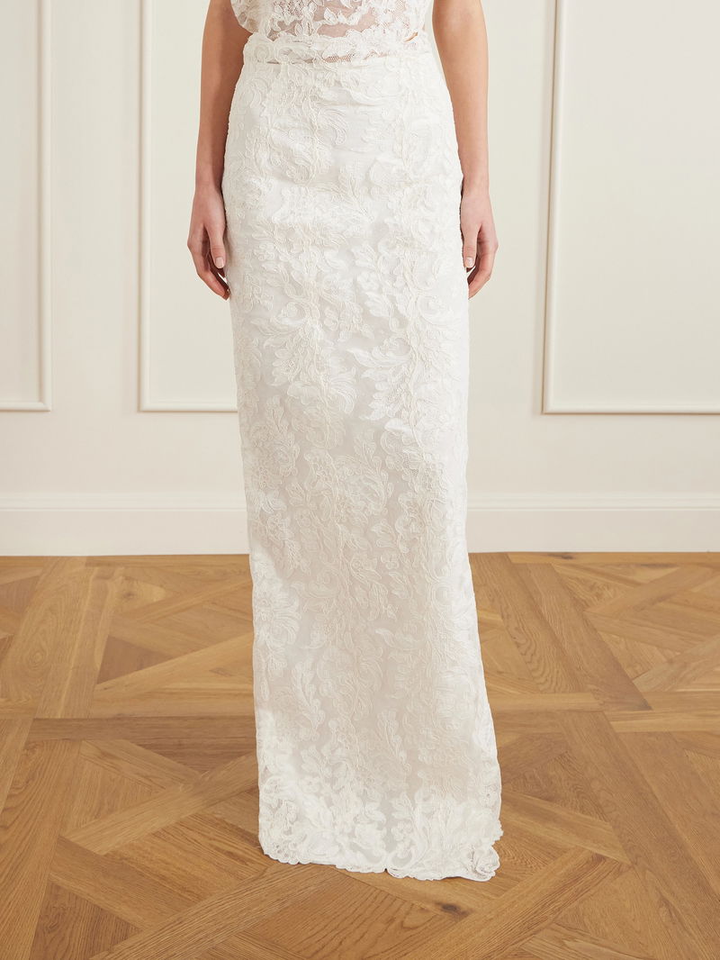 Modern brides are sure to love Christopher Esber's white maxi skirt. It's cut from opaque silk-satin, with beautiful vintage-inspired lace. Wear it with pared-back heels and the matching cami-style top in our edit.