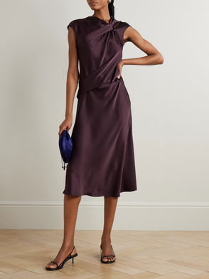 This midi dress from Christopher Esber is designed with ruched straps that cross over at the midriff cutout and form the shoulder and back straps, too. It's made from airy linen with a side slit.