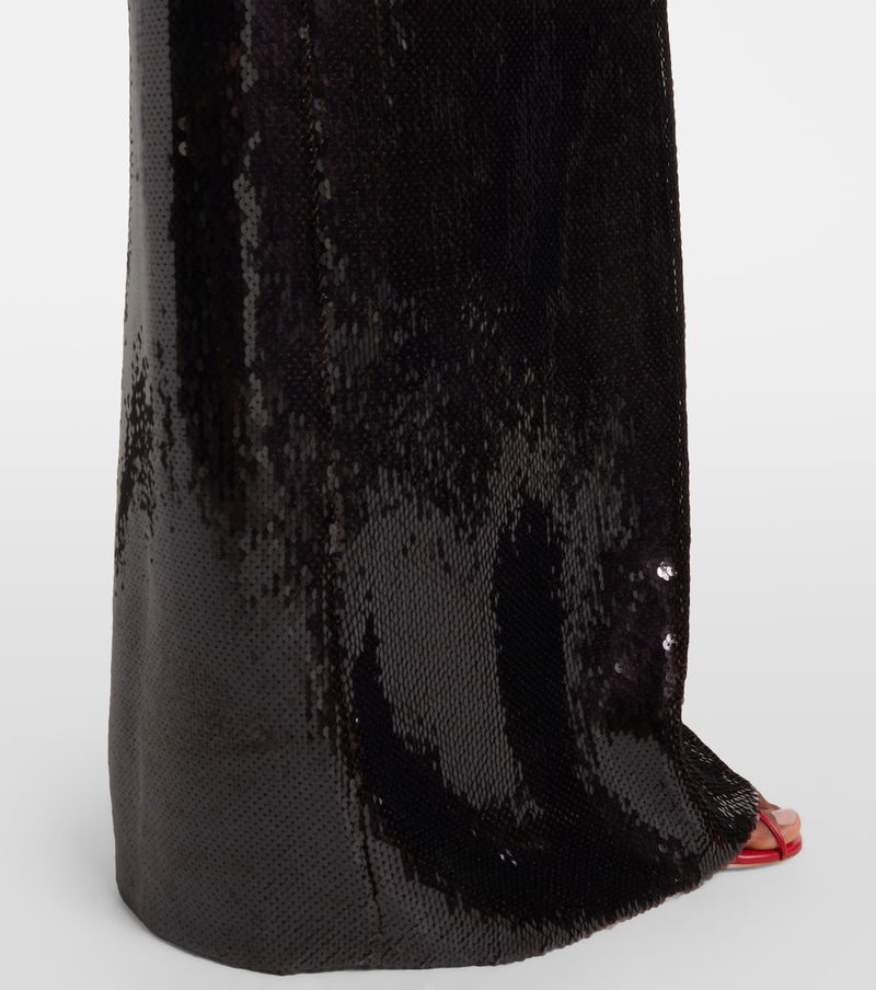 Exude sculptural elegance with this floor-length gown from Christopher Esber. The sleeveless design is adorned with shimmering brown-hued sequins for a statement-making effect.