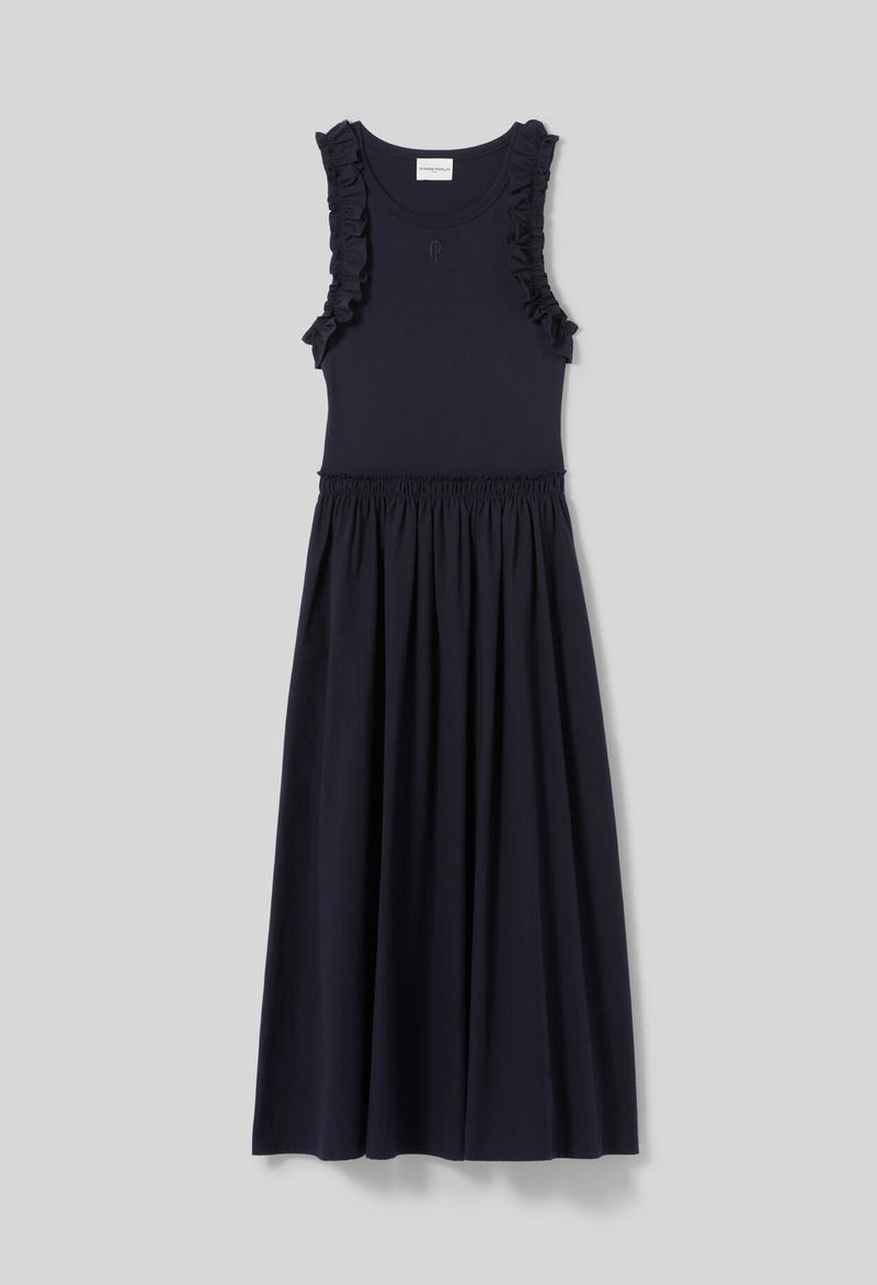 Dual-material 100% cotton dress with a sleeveless jersey top and poplin skirt.