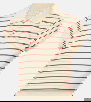 Striped Fine-Knit Top with Shirt Collar and Visible Front Button Placket - Striped fine-knit top - Shirt collar - Visible front button placket - Short sleeves - Ruffled and contrasting trims at sleeve ends and hem - Slim fit.