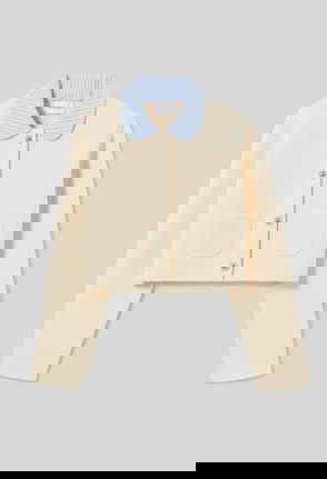 Knitted cardigan with a round neck and double-breasted front - Knitted cardigan - Round neck - Double-breasted with contrasting buttons - 3/4 length sleeves with hems - Fitted cut.