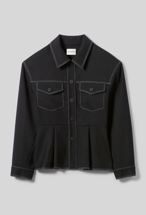 Our studio was inspired by the Yuppie movement (Young Urban Professional), emblematic of New York office wear in the 80s. This historically masculine wardrobe has been completely reinvented in a feminine version. Pastel colours - parma or sky blue - and mischievous details, like the jewel button, make up a silhouette that blends formal codes with a casual spirit.