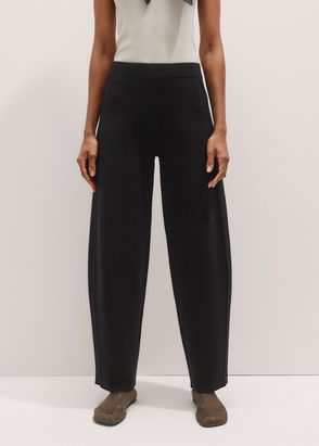 Black tailored cigarette trousers with a classic fit, regular waist with belt loops. Tailored cigarette-fit trousers. Regular waist with belt loops. Pressed pleats down the front and back. Two side slash pockets. Two welt pockets at the back.