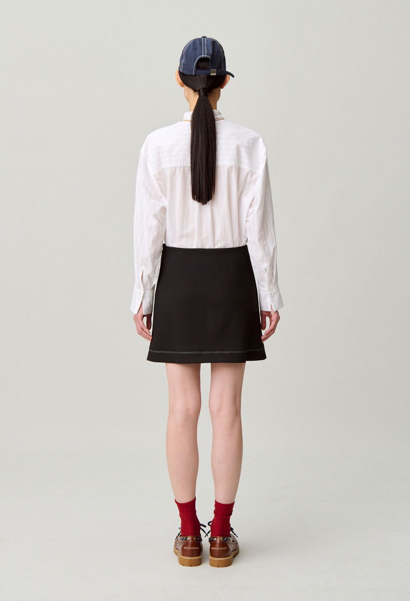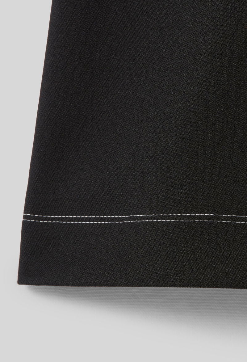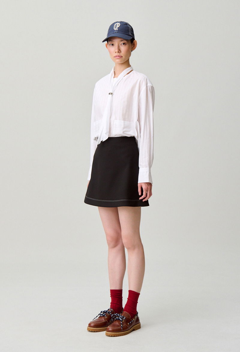 Short, straight skirt with a regular waist and contrasting topstitching. Short, straight skirt - Regular waist - Side zip fastening - Double contrasting topstitching on the hem.