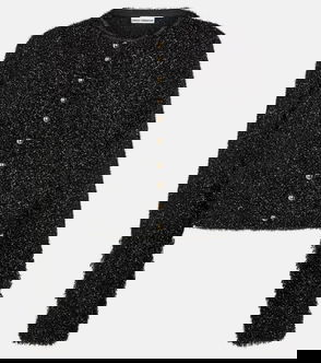 Short bolero cardigan. Button fastening, long sleeves Ruched strips on the hem and semi-sheer stripes.