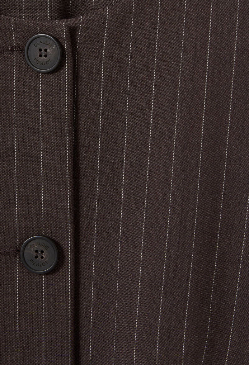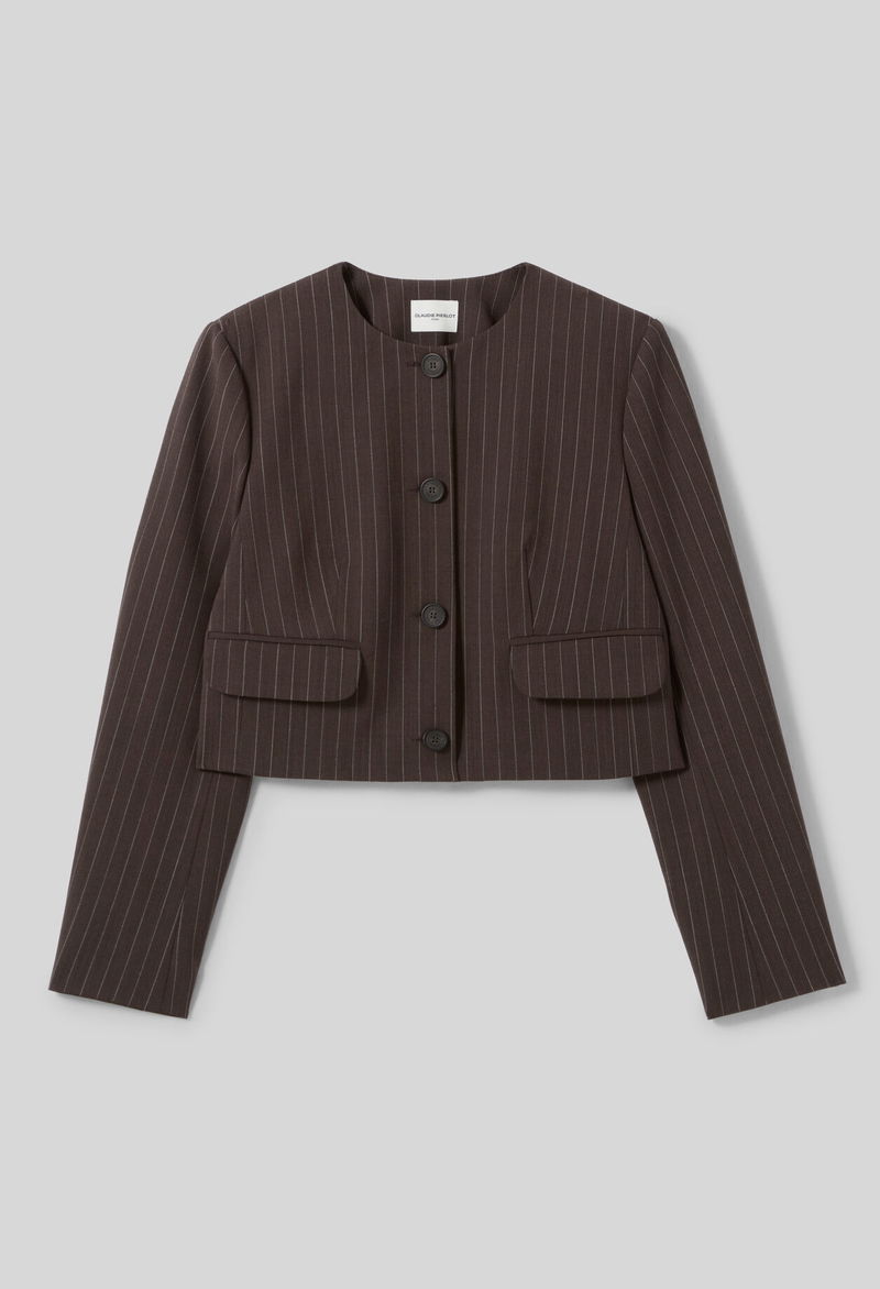 This studio was inspired by the Yuppie movement (Young Urban Professional), emblematic of New York office wear in the 80s. This historically masculine wardrobe has been completely reinvented in a feminine version. Pastel colours - parma or sky blue - and mischievous details, like the jewel button, make up a silhouette that blends formal codes with a casual spirit.