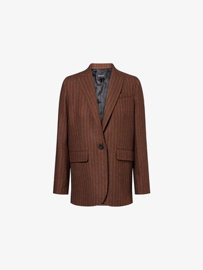 Tailored blazer with a slightly fitted silhouette and wide lapel collar - Fitted blazer - Wide lapel collar - Faux horn engraved buttons at the fastening and cuffs - 2 double welt pockets with flaps - Centre back vent - Slightly rounded hemline.