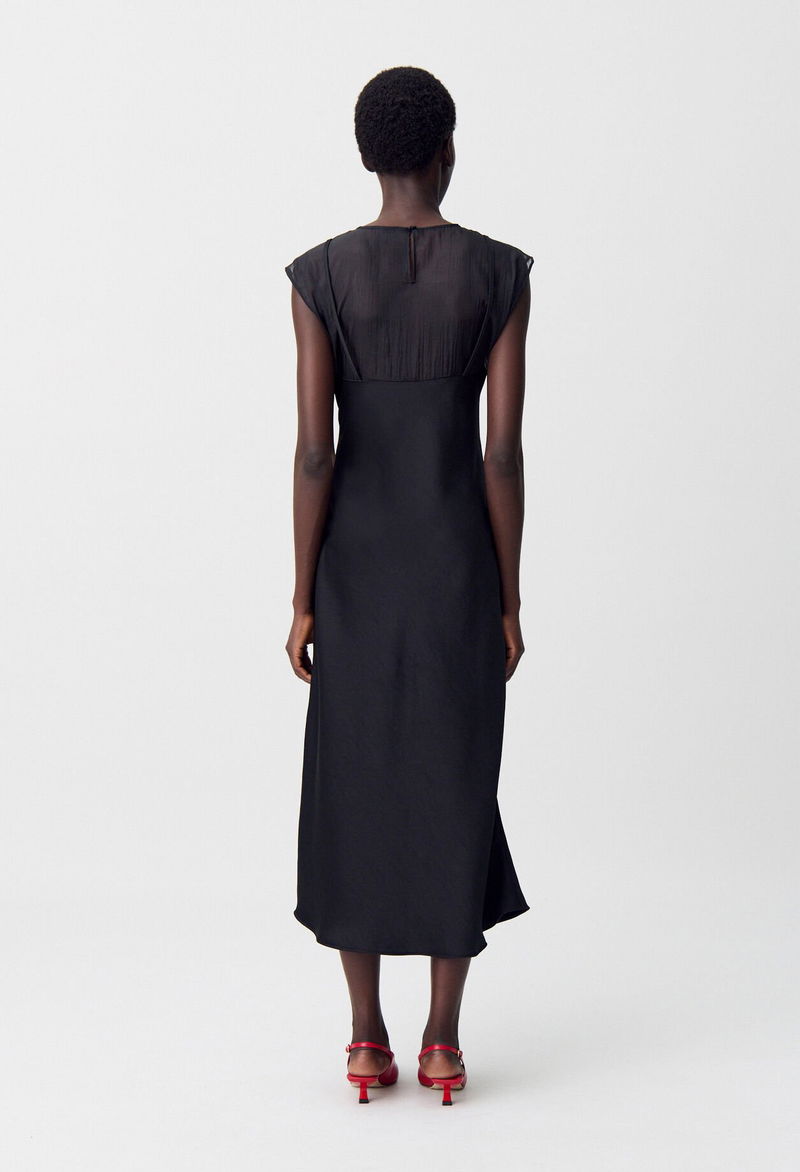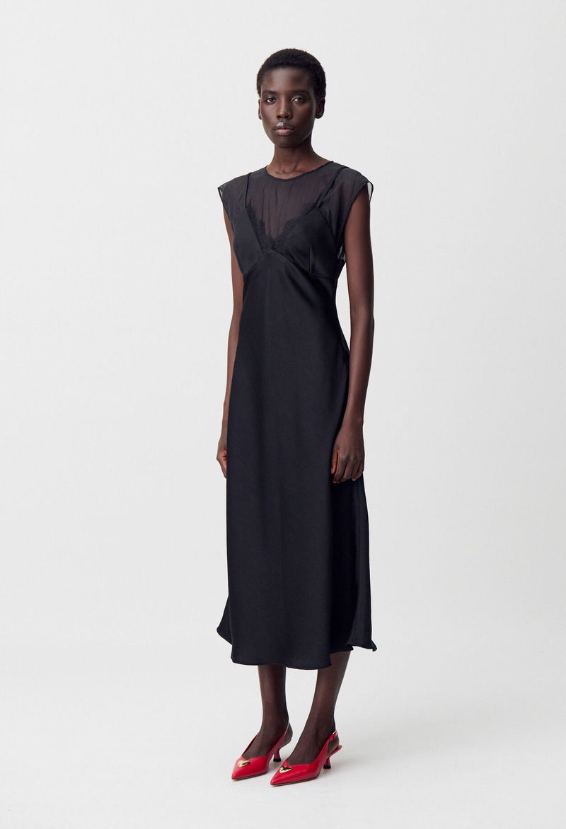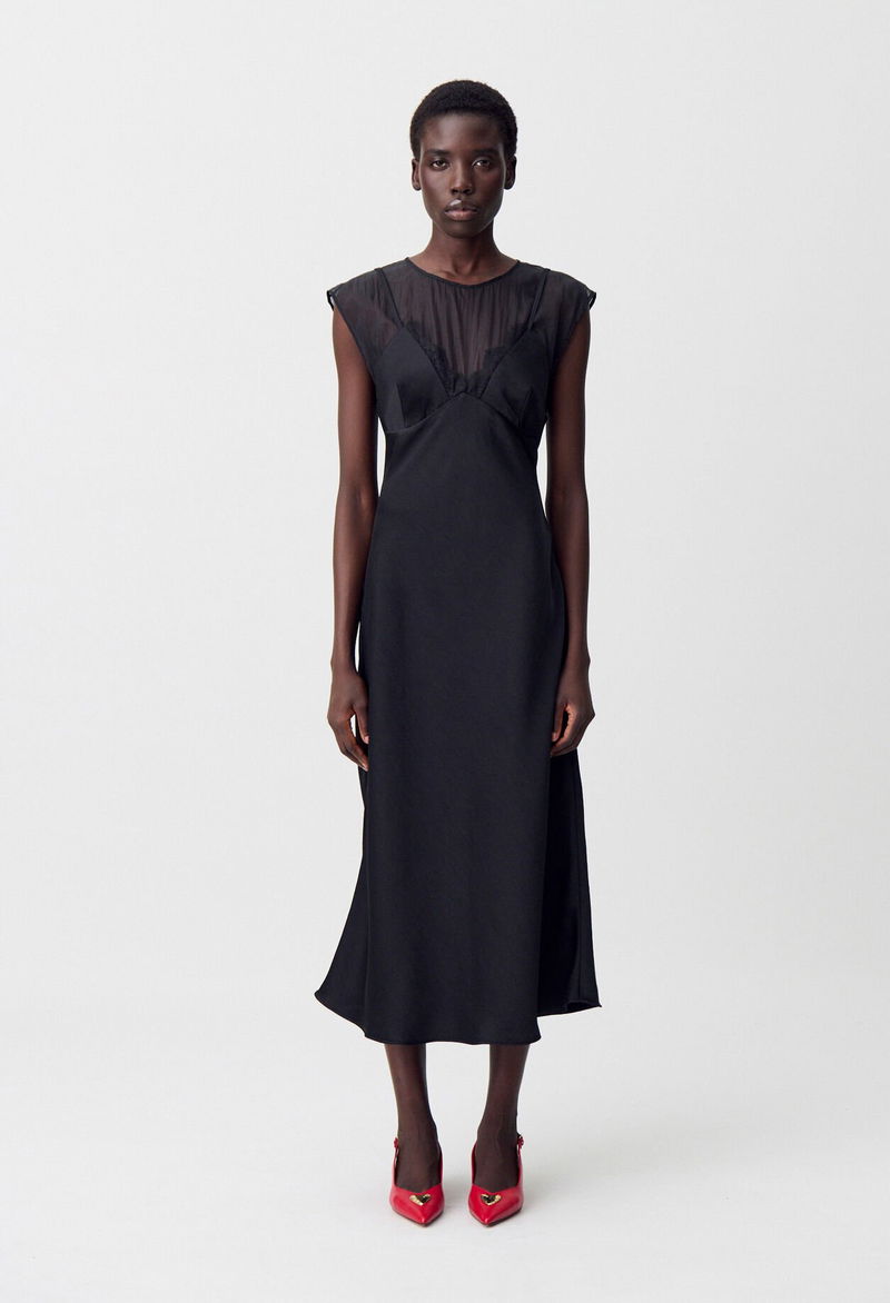 Each year, high society gathers for a grand gala evening. By reinterpreting this wardrobe in a feminine and contemporary way, the studio has envisioned lace details on dresses, tops, and skirts in predominantly black tones, combined with sheer accents. The work on pleating and draping is elevated by fluid and sharp cuts.