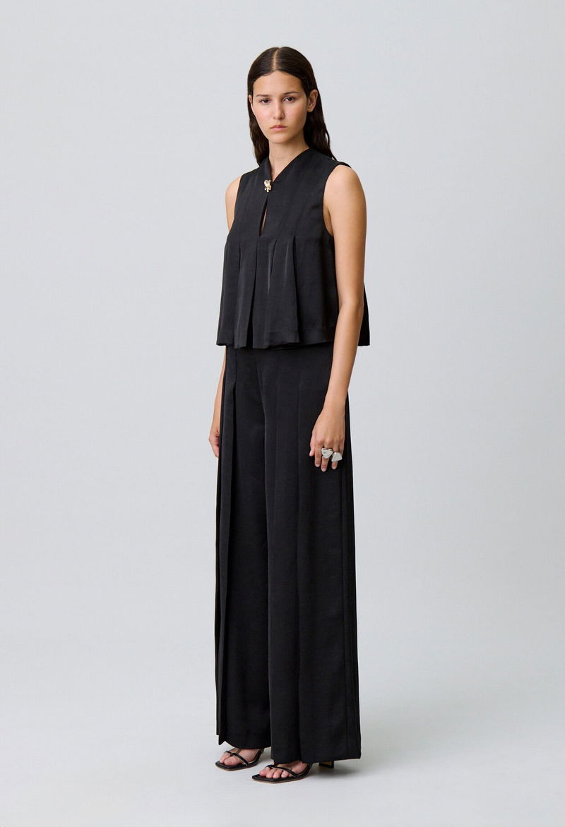 Each year, high society gathers for a grand gala evening. By reinterpreting this wardrobe in a feminine and contemporary way, our studio has envisioned lace details on dresses, tops, and skirts in predominantly black tones, combined with sheer accents. The work on pleating and draping is elevated by fluid and sharp cuts.
