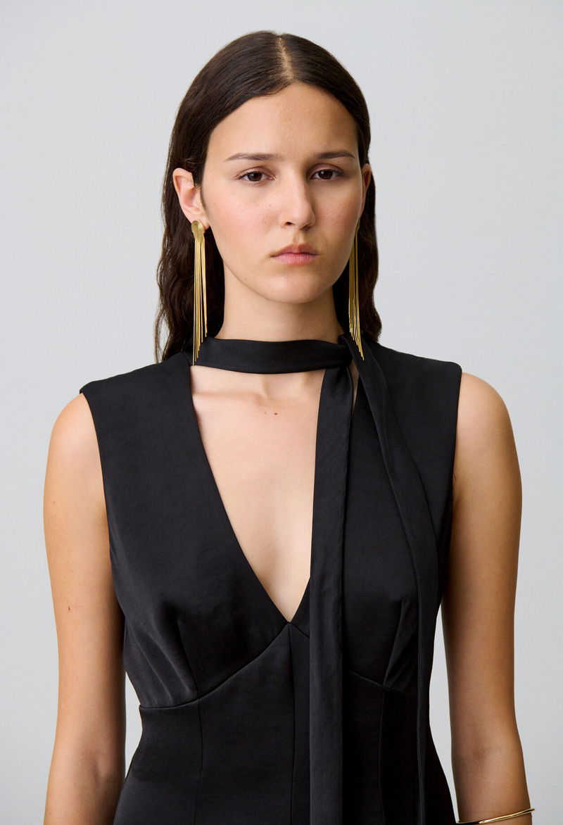 Each year, high society gathers for a grand gala evening. By reinterpreting this wardrobe in a feminine and contemporary way, our studio has envisioned lace details on dresses, tops, and skirts in predominantly black tones, combined with sheer accents. The work on pleating and draping is elevated by fluid and sharp cuts.