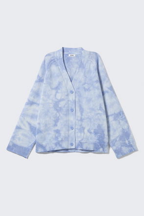 Jacquard knitted cardigan with CP print. Slim snug fit. Shirt collar. Long sleeves Contrasting popper fastening. Contrasting striped finish.