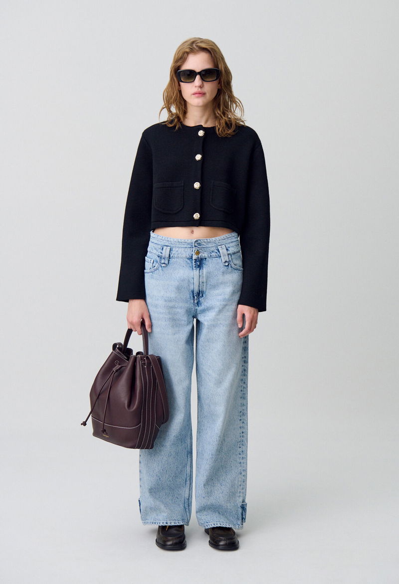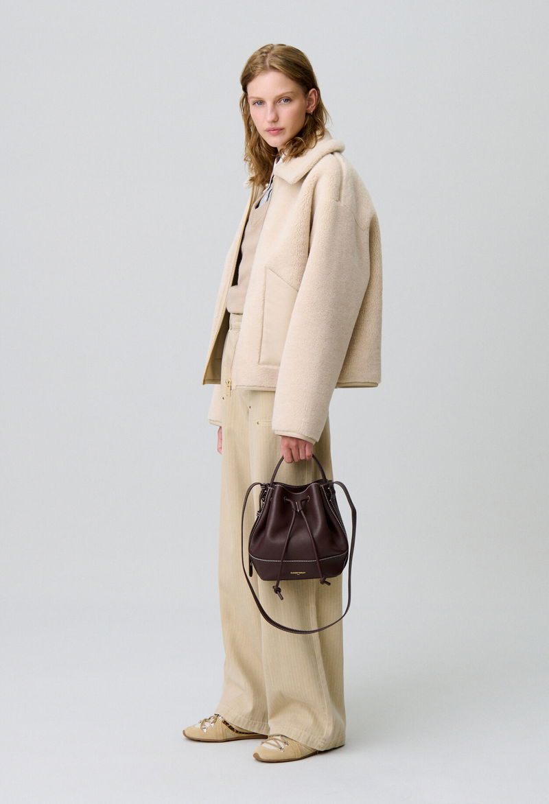 Claudie Pierlot opened the doors of a palace and turned social codes on their head. Inspired by the uniform of Bellman, the emblematic baggage handler, our studio has created feminine, modern and daring silhouettes. With oversized cuts, signature details and removable collars, we revisit the mid-century style to create pieces with assertive and surprising looks.
